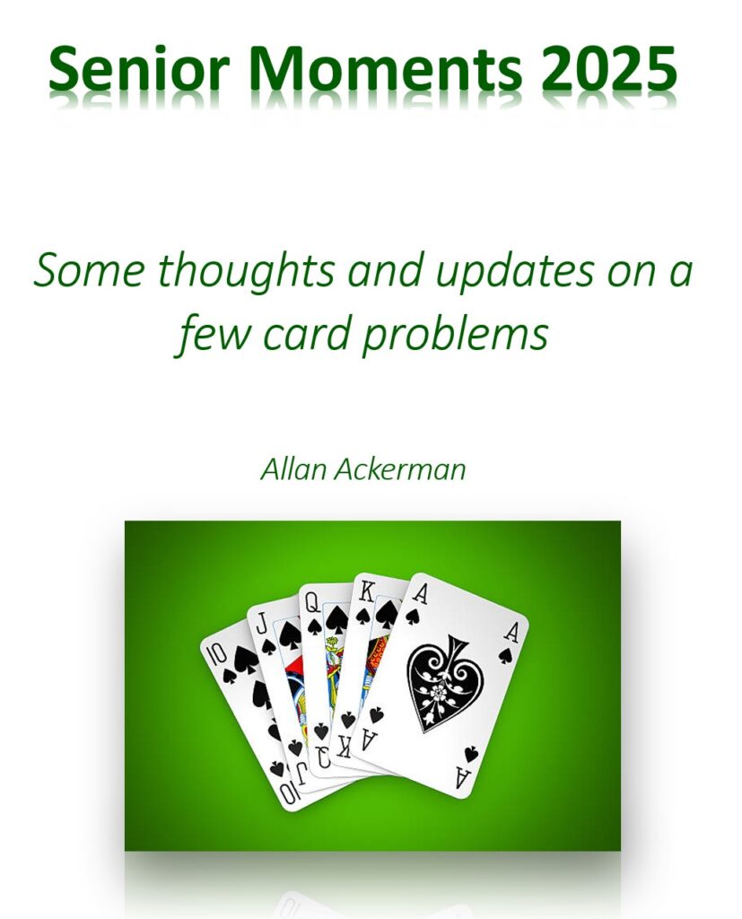 Senior Moments 2025 are Allan’s lecture notes from the Magic Castle 2025 lecture. The notes contain nine card effects and five moves. The routines in these notes are ideas that are not included in Allan’s new book set, All♦️In.
